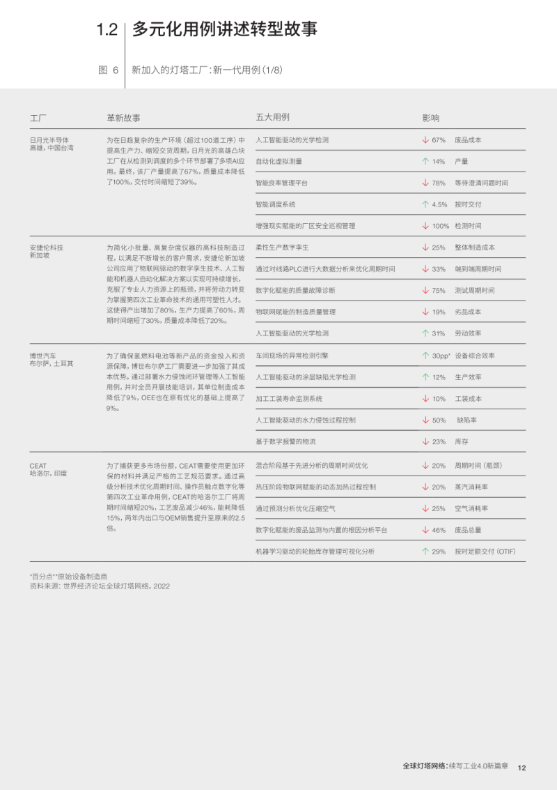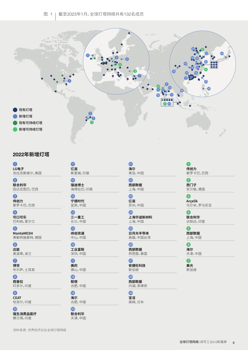 自成立以来,灯塔网络不断壮大,其制造业成员如今已遍布世界各地。全球灯塔网络恪守初心,用行动证明,时间的淬砺足以让愿景成为现实。如今,全球灯塔成员总数已升至132家,他们所启用的139项用例覆盖各地各业的工厂和价值链上下游。