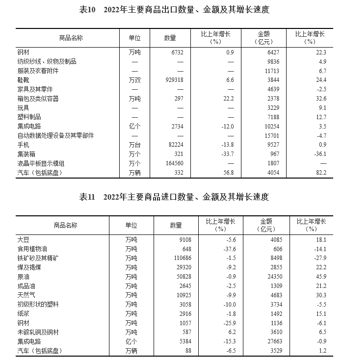 集微网消息,国家统计局发布2022年国民经济和社会发展统计公报,统计公报显示,新产业新业态新模式较快成长。全年规模以上工业中,高技术制造业增加值比上年增长7.4%,占规模以上工业增加值的比重为15.5%;装备制造业增加值增长5.6%,占规模以上工业增加值的比重为31.8%。全年规模以上服务业中,战略性新兴服务业企业营业收入比上年增长4.8%。全年高技术产业投资比上年增长18.9%。全年新能源汽车产量700.3万辆,比上年增长90.5%;太阳能电池(光伏电池)产量3.4亿千瓦,增长46.8%。