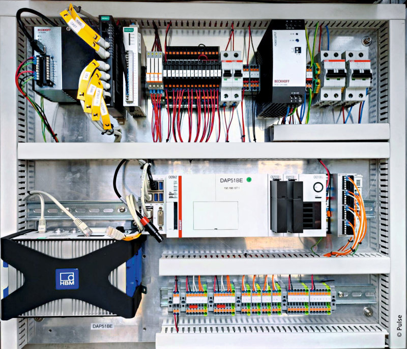 控制柜内配备 CX2000 嵌入式控制器和直接插接的 ELM 系列测量端子模块(图片中心)、CU8130 UPS(左上)以及 PS2000 电源(右上)