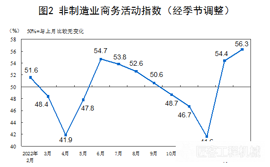 2月份,非制造业商务活动指数为56.3%,比上月上升1.9个百分点,高于临界点,非制造业恢复发展态势向好。