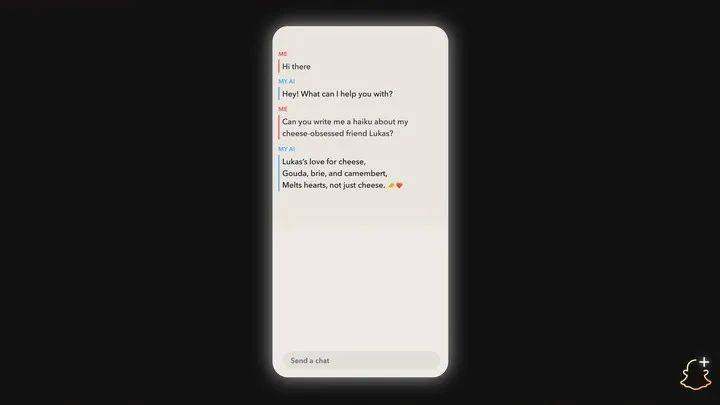 My AI 为用户提供了语气友好、个性化的聊天机器人,可以在用户用指尖输入之时提供建议,甚至可以在几秒钟之内为朋友写一个俳句。作为一个日常聊天通讯工具,Snapchat 每月有 7.5 亿个 Snapchat 用户。