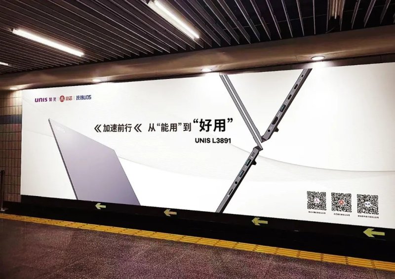IT之家 3 月 3 日消息,紫光计算机与兆芯、统信软件联合推出了紫光 UNIS L3891 国产化商用笔记本电脑,售价 6332 元起,广告登陆天安门东、天安门西地铁站。