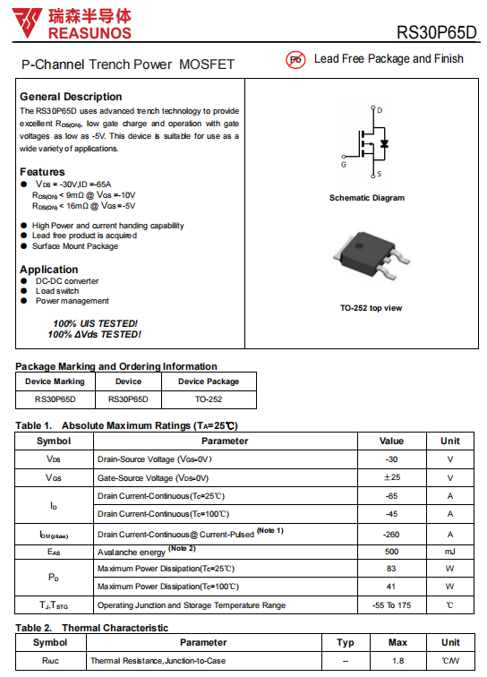 RS30P65D型号产品规格书: