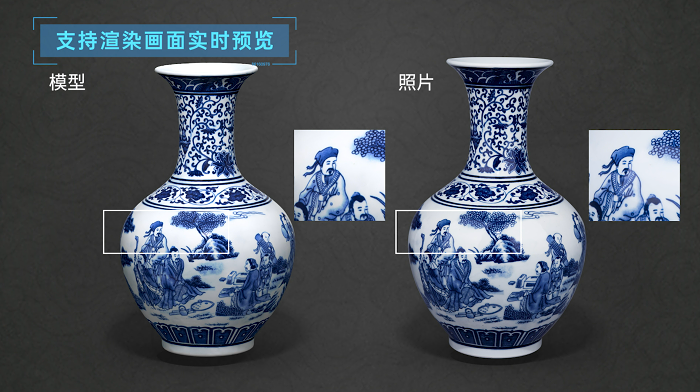 针对模型重建后的后期处理环节,还可提供专用软件简易一站式处理重建和调优,操作简易安全稳定,通过专业照片对比,快速批量完成修图,实现高保真纹理贴图。
