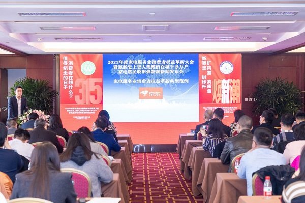 3月13日,中国家用电器服务维修协会召开2023年度家电服务业消费者权益革新大会暨掀起史上更大规模的百城千乡万户家电惠民收旧焕新潮新闻发布会。大会现场,协会领导向京东颁发了“2022年度家电服务业消费者权益革新示范单位”证书。