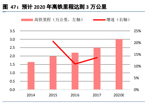 预计 2020 年高铁里程达到 3 万公里