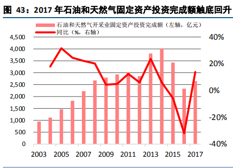 2017 年石油和天然气固定资产投资完成额触底回升
