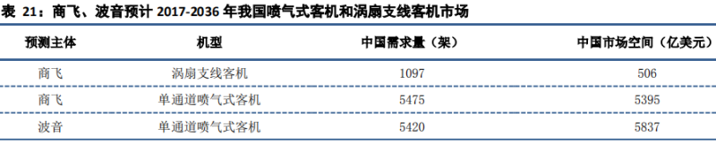 商飞、波音预计 2017-2036 年我国喷气式客机和涡扇支线客机市场