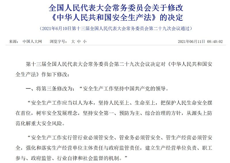 新版《安全生产法》修订通过