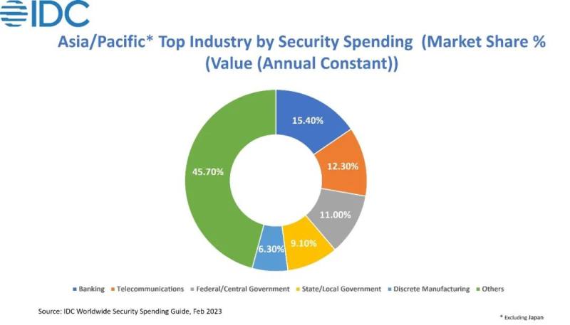C114讯 3月15日消息(颜翊)根据IDC最新发布的《全球半年度安全支出指南》,2023年亚太地区(不包括日本,下同)的安全硬件、服务和软件支出预计将达到360亿美元,比上年增长16.7%。