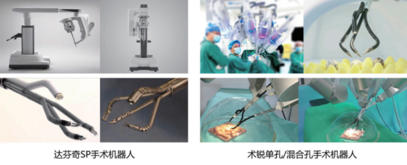 国内公司中,北京术锐技术有限公司基于连续体蛇形臂技术研发的单孔腔镜手术机器人可实现精准的切割和缝合,于2021年完成了亚洲首台纯单孔机器人前列腺癌根治术,在相同手术效果下,与达芬奇多孔系统相比切口数量更少、面积更小。目前,术锐公司与多家临床中心开展了普外科、妇科等单孔机器人手术临床试验,在自主研发、替代进口上具有重大意义。
