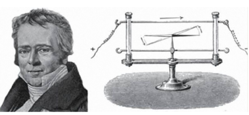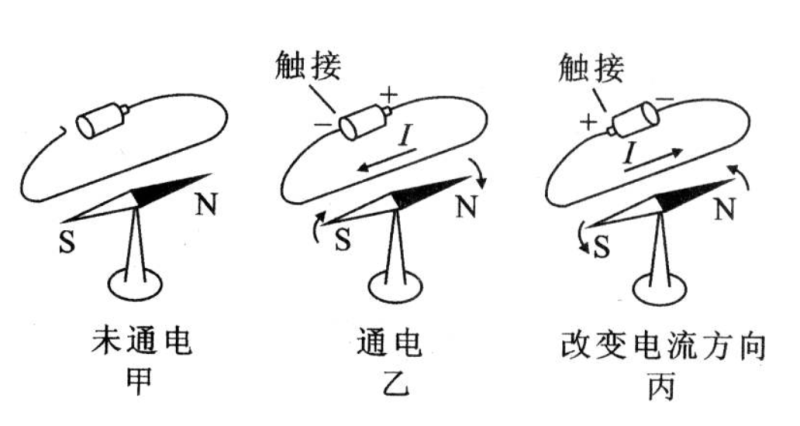 电和磁交汇的第一件大事是丹麦哥本哈根大学教授奥斯特于 1820 年 7 月发布的一个细小的发现:在电流线周围,小磁针发生了环形偏转。