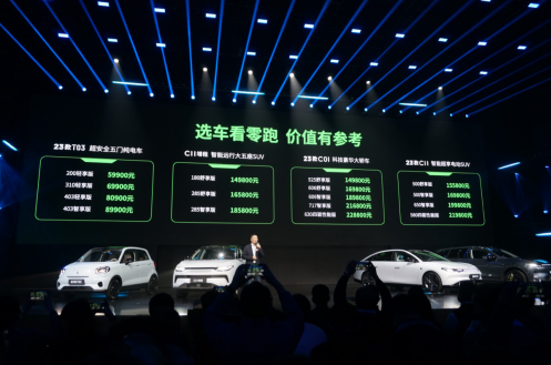 本月初,零跑汽车推出了C11增程版,同时对旗下全系车型进行了换代,售价则进一步降低。其中,2023款T03售价5.99 万-8.99 万元,相比此前的8.25万-9.95万元,下降超过2万元;2023款C11 纯电版本售价15.58 万-21.98 万元,相比此前18.58-23.98 万元,也下降2万多元;2023款C01售价14.98 万-22.88 万元,相比此前19.38万-28.68 万元,下降最高接近6万元;而C11增程的售价14.98-18.58万元,也比预售价下降了1万元。