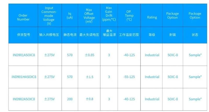 致力于提供高品质芯片的国内优秀模拟及数模混合芯片设计商上海类比半导体技术有限公司(下称“类比半导体”或“类比”)宣布推出IND90x系列高精度、高可靠性、±275V 高共模电压差分放大器。该系列产品具有出色的直流精度和可靠性表现,增益误差温漂最大值为3ppm/°C,ESD HBM实际测试最高可达1.75kV,优于同类产品。IND90x系列差分放大器可作为隔离放大器、隔离运放以及霍尔传感器的替代方案,广泛应用于各种高共模电压应用领域,例如高压电池包电压电流监测、堆叠电池组的电池电压测量、电力自动化、电源电流监控以及电机控制等场景。