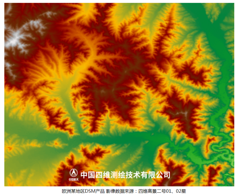 四维高景二号01、02星干涉性能良好,生成的数字表面模型(DSM)产品地形特征显著。经测试验证,DSM产品满足1:25000比例尺测绘精度要求。