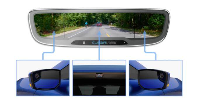 CLEARVIEW内后视镜的特点是无框设计,并且能够在传统的后视镜和视频显示器之间进行电子切换。视频显示器有可定制的视野范围,可以同时显示多达三个摄像头的视图。当使用传统的内后视镜时,尤其当乘客、货箱和/或拖车限制了司机的视野时,这项新技术的应用将解决这一困扰。该系统还具有电容式触控界面,可将汽车制造商或汽车标识显示在内。
