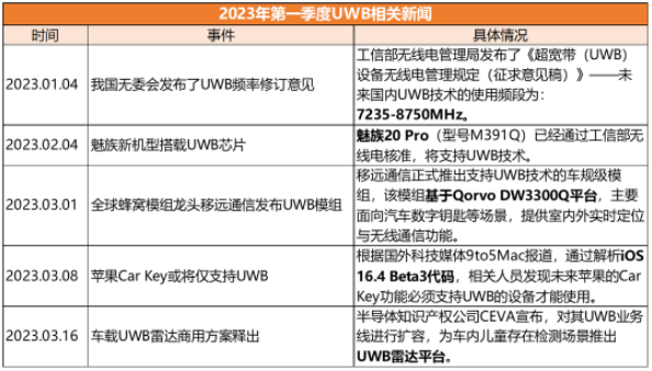 2023年第一季度UWB相关新闻