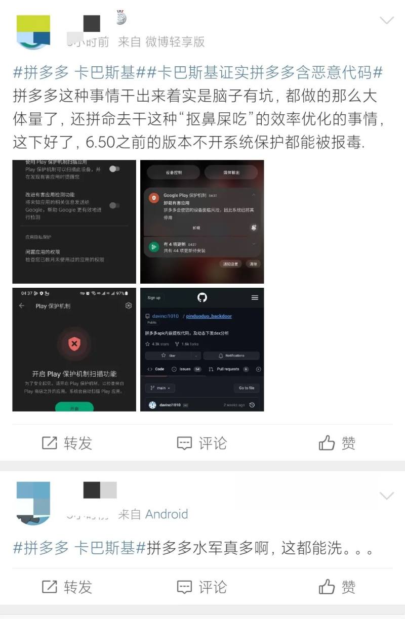 Github上公布了恶意行为报告的PDF版本。它从技术层面详细分析了拼多多是如何侵害用户隐私行为的,相当于提供了更确凿的证据。