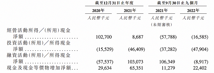 低议价权所带来的高账期也影响到泛远国际的经营现金流表现。该公司截至2021年及2022年9月30日止九个月均录得净经营现金流出,而回顾2020年及2021年,其经营活动所得现金净额也呈下降趋势,由2020年的1.02亿元降至868.7万元。