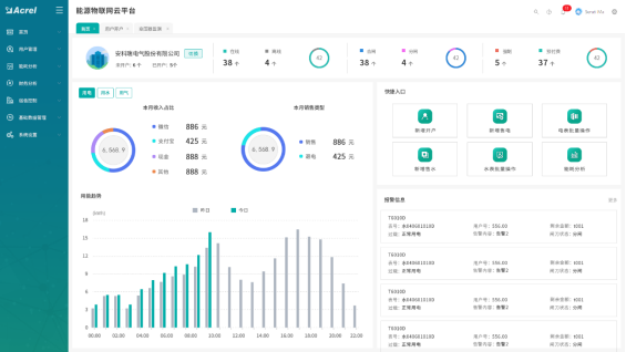 通过物联网技术,对接入系统的充电桩站点和各个充电桩进行不间断地数据采集和监控,同时对各类故障如充电机过温保护、充电机输入输出过压、欠压、绝缘检测故障等一系列故障进行预警。云平台包含了充电收费和充电桩运营的所有功能,包括城市级大屏、交易管理、财务管理、变压器监控、运营分析、基础数据管理等功能。