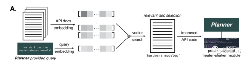 “文档搜索器”(Docs searcher)组件,能够通过查询和文档索引,查到最相关的部分,从而梳理硬件文档(比如机器人液体处理器、GC-MS、云实验室),然后汇总出一个最佳匹配结果,生成一个最准确的答案。