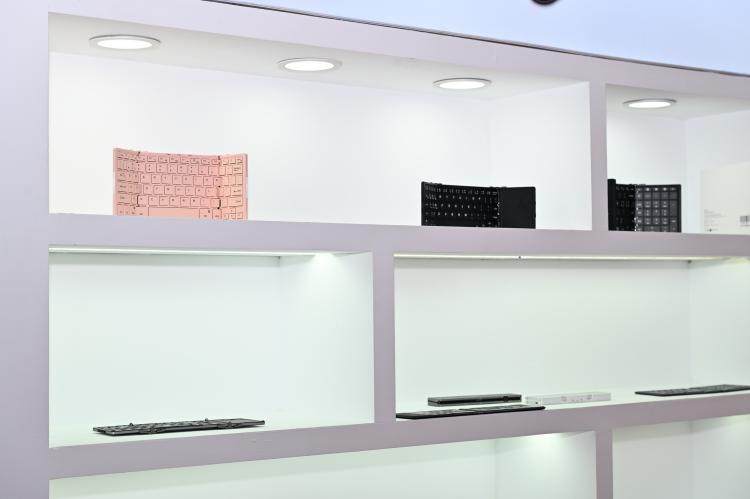 此外,航世还带来了轻便版人体工程学键盘,在体验舒适的同时还可以折叠起来,便于携带,能更好地运用于飞机高铁等不同场景,展会中航世还带来了三叠键盘、超薄键盘等产品,将便携性做到了极致。