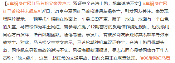 【智慧城市网 时事聚焦】近日,00后网红马若松车祸身亡的报道在网上迅速发酵并引起人们热议。