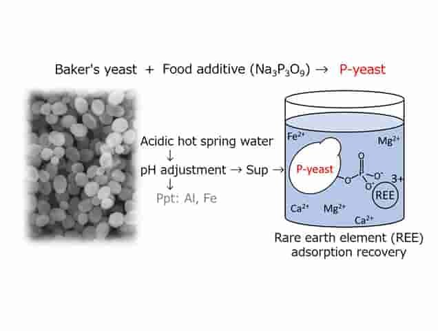 日本大阪府立大学(Osaka Prefecture University)的研究人员开发出一种吸附酵母材料,该材料可有效回收温泉水中的微量稀土元素。研究人员使用添加了磷酸基团的金属吸附酵母(P-酵母),选择性地回收了合成海水和温泉水中的微量稀土元素。