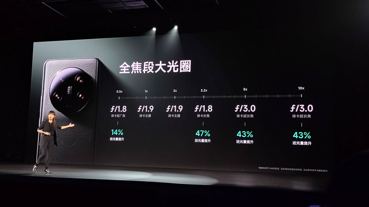 在影像方面,小米与徕卡继续深入合作带来了全新的Summicron光学镜头,拥有超高阶偶次多项式镜片设计,纳米级高精度打磨,并有全新高稳定态镀膜。小米13 Ultra主摄依然是1英寸IMX989,不过这颗主摄也实现了升级,支持f/1.9与f/4.0两挡可变光圈,能够带来不同程度的景深虚化效果,实现2EV的曝光调整。