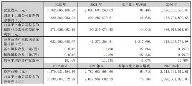 【仪表网 行业财报】4月19日,谱尼测试(300887.SZ)披露2022年年度报告,报告期公司实现营收37.62亿元,同比增长87.48%;归母净利润3.21亿元,同比增长45.63%;扣非净利润2.74亿元,同比增长44.01%;基本每股收益0.8312元。公司拟向全体股东每10股派发现金红利7元(含税),每10股转增9股。