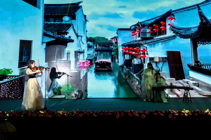 “弦依高张断,声随妙指续。”这或许是对古筝最精妙的描述。古筝登台,传统曲艺技能让观众眼前一亮。小提琴弦音如丝绢般轻滑,如溪水般缓缓流动。而后歌声融入琴声之中,舒缓涌入听众耳中,重回“种豆南山下”的悠然自得。