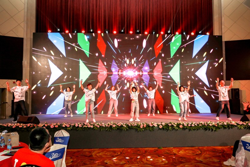 一场舞台剧,概括了迪马科技从成立,到拿到第一笔订单,再到开拓海外市场。一步一个脚印,稳稳当当、踏踏实实。台上大荧幕中播放着三十年来迪马科技的点点滴滴。往事涌上心头,过去的困难早已变为今日的欣慰、欢乐和希望。