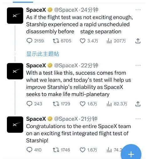 此前,马斯克曾表示,首次入轨发射成功的概率50%,年内发射成功的概率约80%。