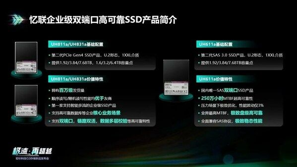 UH6系列为SAS 3.0代次企业级主力销售产品,是国内唯一SAS双端口SSD产品,在全闪阵列和混闪阵列中广泛使用。UH6系列具有双端口特性和可靠性性能验证,MTBF高达250万小时,能为用户提供极致的稳态性能。