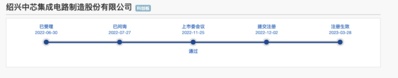 此外,日前,上海证券交易所披露的信息显示,绍兴中芯集成电路制造股份有限公司(以下简称中芯集成)已进入 IPO 发行阶段,即将登陆科创板。