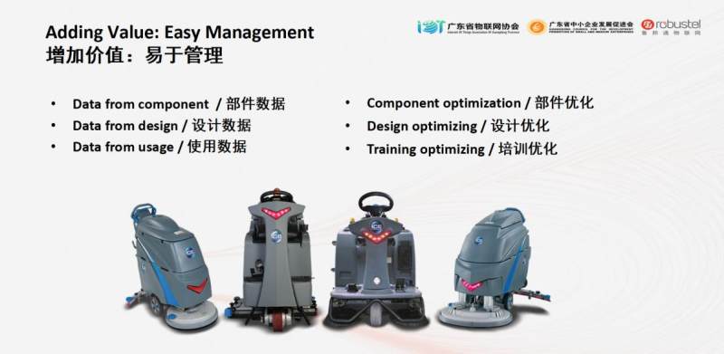 国邦是全球范围内少数能够集智能清洁设备的研发、设计、制造、销售、服务、租赁一体化的高新技术企业,主要产品有自动洗地机、多功能擦地机、吸尘吸水机等多种智能清洁设备。为了突破行业同质化和低价竞争的困境,国邦近年积极转型为一家物联网清洁设备服务提供商,从2015年开始与鲁邦通合作,在鲁邦通工业物联网硬件+云一体化能力的支持下,构建了“i-Synergy”智能清洁系统,为客户提供清洁设备智能化租赁服务。