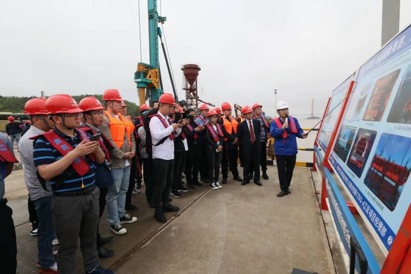 中铁大桥局甬舟铁路西堠门公铁两用大桥项目部物资机械部部长吴坤学在活动观摩现场也为参与此次活动的嘉宾进行了详细的项目介绍,他说:“工欲善其事必先利其器。考虑到钻孔桩施工难度大,需要大型设备助力,我们与山河智能联合研发SWDM1280旋挖钻机,在4.5米施工中体现了实力,得到了我们大桥局的认可。”