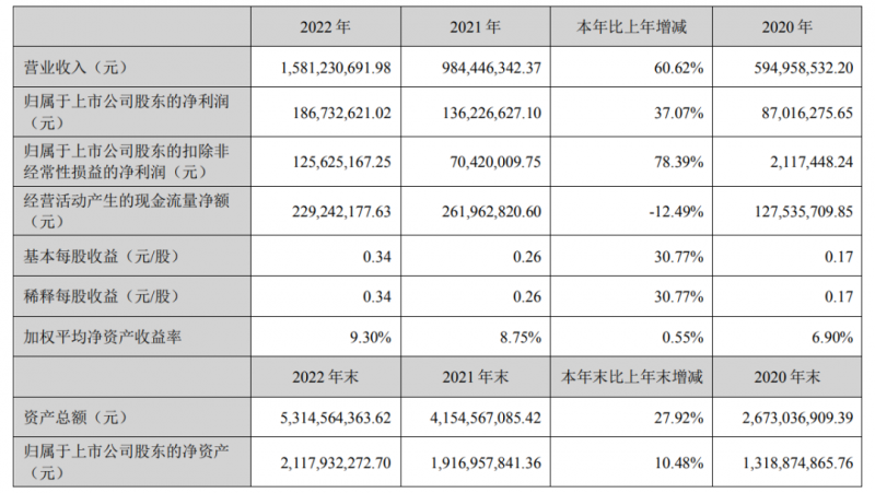 3月17日,南大光电披露2022年年报,2022年实现营业收入15.81亿元,同比增长60.62%;归母净利润1.87亿元,同比增长37.07%;扣非归母净利润1.26亿元,同比增长78.39%。