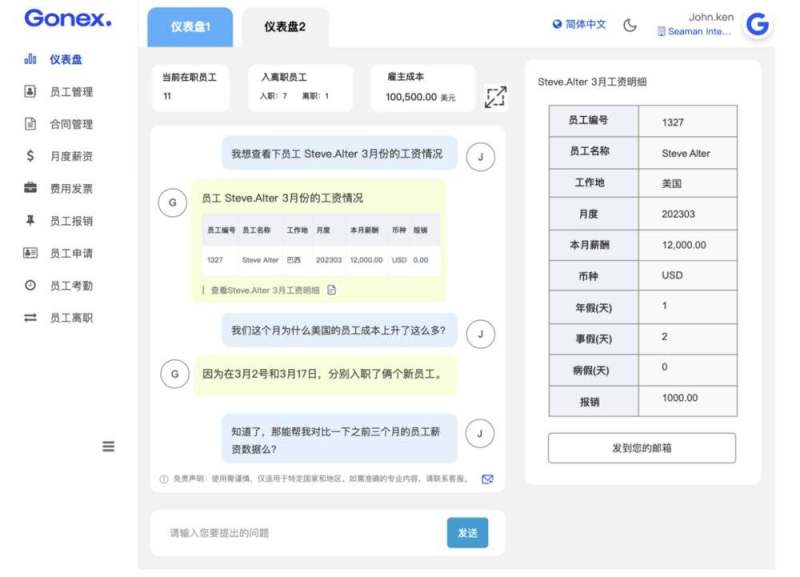 不过有一些传统业务功能的局限却可以用自然语言的形式来实现,比如输入基础考勤和税务信息根据每个国家工资的算法进行月度工资的计算是非常复杂的逻辑和算法,用自然语言是不容易实现的,但是基于这个算薪结果进行比较又是用传统的逻辑和算法无法完成的,而一般都需要人为的查询和比较,并解释。