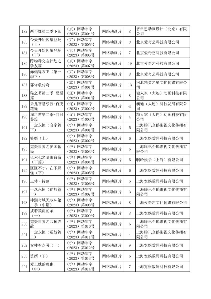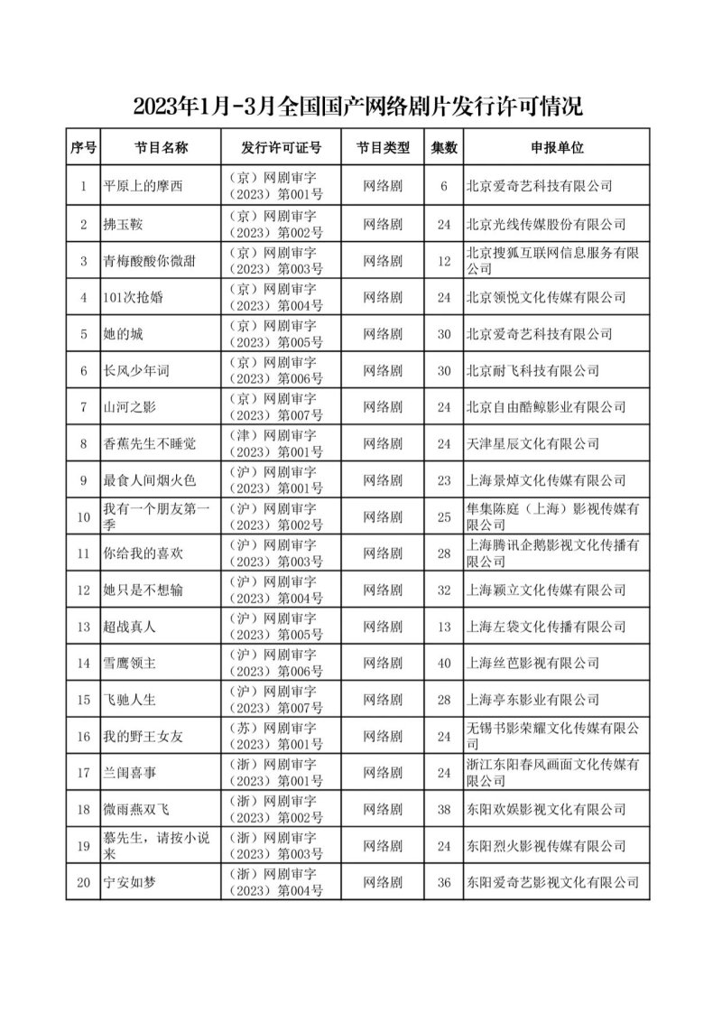 IT之家 4 月 24 日消息,国家广播电视总局发布 2023 年 1 月至 3 月全国国产网络剧片发行许可情况通告,颁发发行许可的国产网络剧片共 238 部。其中网络剧 38 部 1009 集,网络微短剧 83 部 1848 集,网络电影 57 部,网络动画片 60 部 649 集。