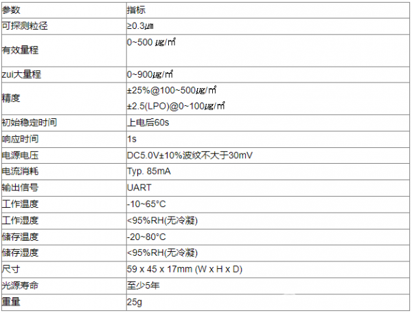 韩国syhitech PM2.5 PM1.0传感器 PSMU系列 参数: