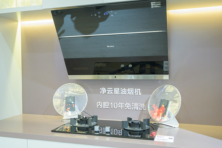 再说格力,作为它的主力产品,格力使用相当的面积来展示它的各类空调产品,但空调之余,格力也在现场展示了厨电、智能家居等产品,比如说像灶具、像冰箱等等。这是格力面对多元化的市场,不断地自我创新、自我探索的结果。