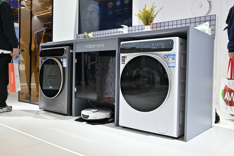 再来到小家电这部分,我们以如今最为热门的清洁类家电为例,在这次的展会上,我们也非常欣喜地看到了这些品牌在多元化上的努力。比如石头科技,它的产品从过往的地面清洁,拓展到了针对衣物清洁的洗衣机。尽管是初次进入这个领域,石头也不满足于简单的制造,而是对烘干技术做了革新,在热泵式和冷凝式烘干的基础上,为用户提供一个“分子筛烘干技术”的新选项。