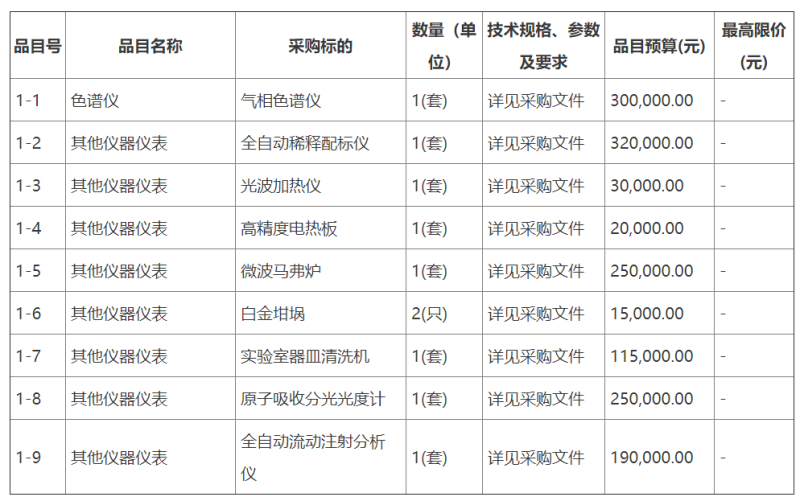 项目名称:实验室仪器设备采购