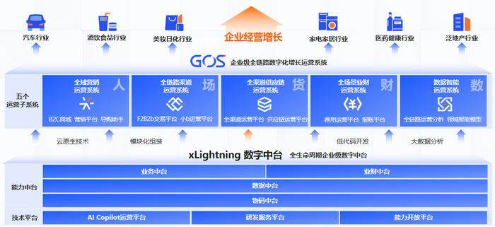 2023年起,云徙从关注消费者体验,到更加关注驱动企业增长的业务应用、资源运营和数据智能等内生数字化能力构建,并持续运营服务长期陪伴客户数字化经营增长。面向消费领域,云徙提供全链路企业级数字化增长运营系统(GOS,Growth Operation System)。基于「人-场-货」三个增长核心驱动要素的「业-场-数」三个层次闭环运营,提升人、场、货运营效果、效率和效益,实现结构性创新和提质增效,驱动企业数字化经营增长。