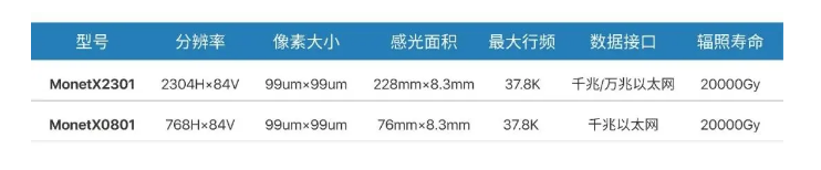 锐芯微电子发布新品MonetX系列X射线TDI线阵探测器。MonetX系列为高性能X射线CMOS TDI线阵探测器,像素大小99um,具有高灵敏度、低电子噪声、高分辨率等特点,同时拥有杰出的抗辐照性能,辐照寿命高达20000Gy。