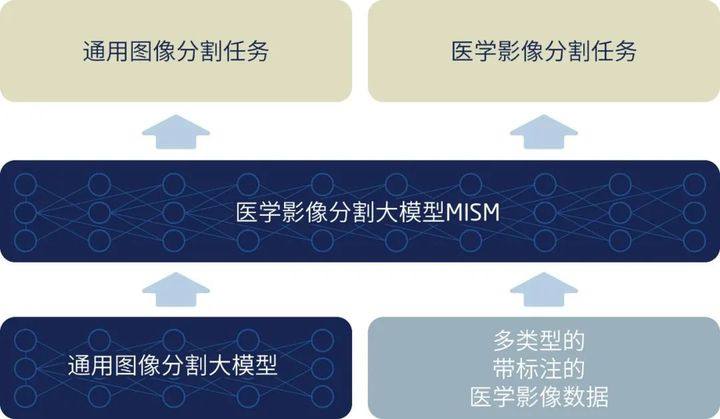 医学影像具有特殊性和复杂性,不同于日常的二维图像,医学影像都是三维数据,目标对象的边缘时常不够清晰,分割难度大,专业性强。基于这些特点,东软智能医疗科技研究院通过深入研究在医学影像领域预训练大模型技术,通过“预训练大模型+下游任务微调”的方式,有效地从大量标记和未标记的数据中捕获知识,扩展模型的泛化能力,解决了模型碎片化问题,为人工智能+医疗提供了崭新的技术路线,为突破现有算法性能的瓶颈提供了无限可能。同时,结合了东软自身积累的多种多样的带有标注数据的大量数据集,对预训练大模型进行二次训练,并针对医学影像的三维特点进行优化,推出了医学影像分割大模型MISM,进一步提高了医学影像标注的质量和效率。