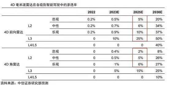 此外,主流新能源车企大概率也会陆续考虑将传统毫米波雷达进行替换,目前大部分车企搭载5颗毫米波雷达,这部分市场未来很可能被4D毫米波雷达所抢夺。