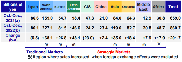 报告称,10-12月独联体和日本的销售额下降,在北美、拉丁美洲和亚洲的销售额急剧增长。