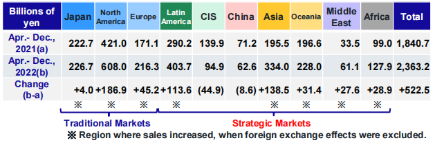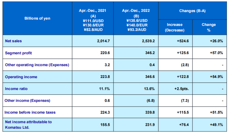 2022年4-12月(2022财年前九个月)小松合并经营业绩